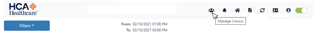 The Manage Census icon in the dashboard header allows users to access the Manage Census screen. All users with access to the dashboard will see this icon. The user’s assigned permissions determine what actions they can perform on the screen.